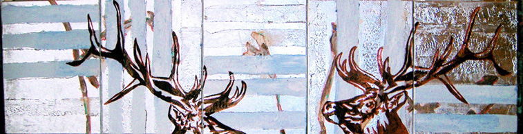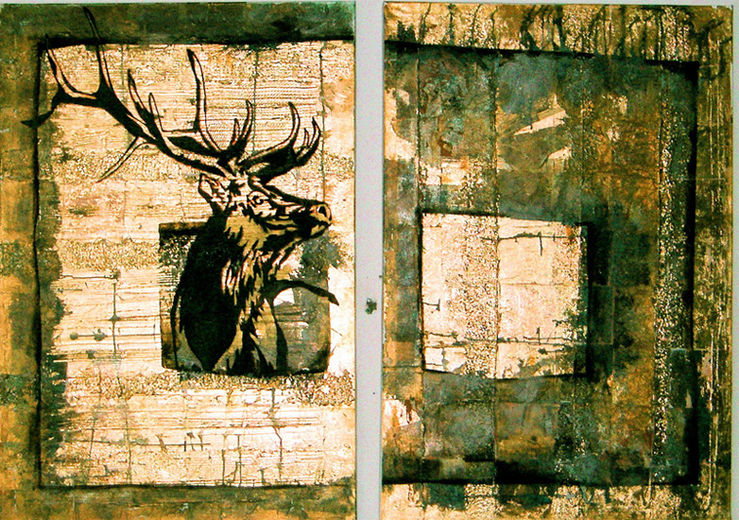 Portfolio. Oft treten aus der Vielschichtigkeit ihrer organisch-abstrakten Bildhintergründe figürliche Motive heraus, durch die eine Bildaussage vermittelt wird.
